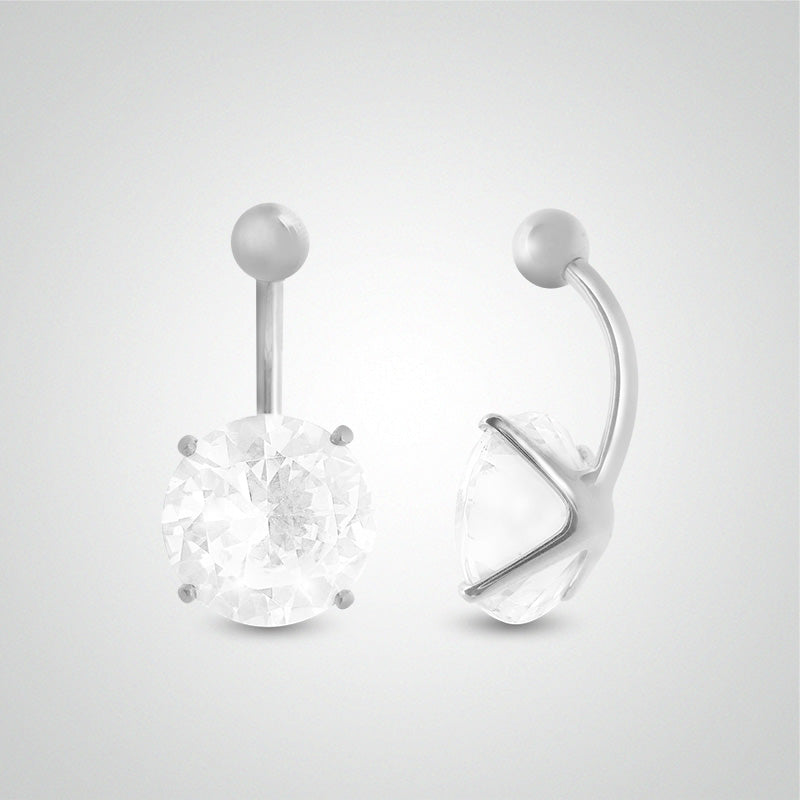 Piercing de nombril en or blanc 18 carats (750/1000) et oxyde de zirconium rond.