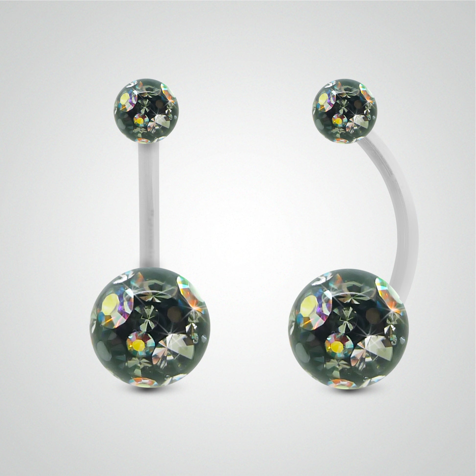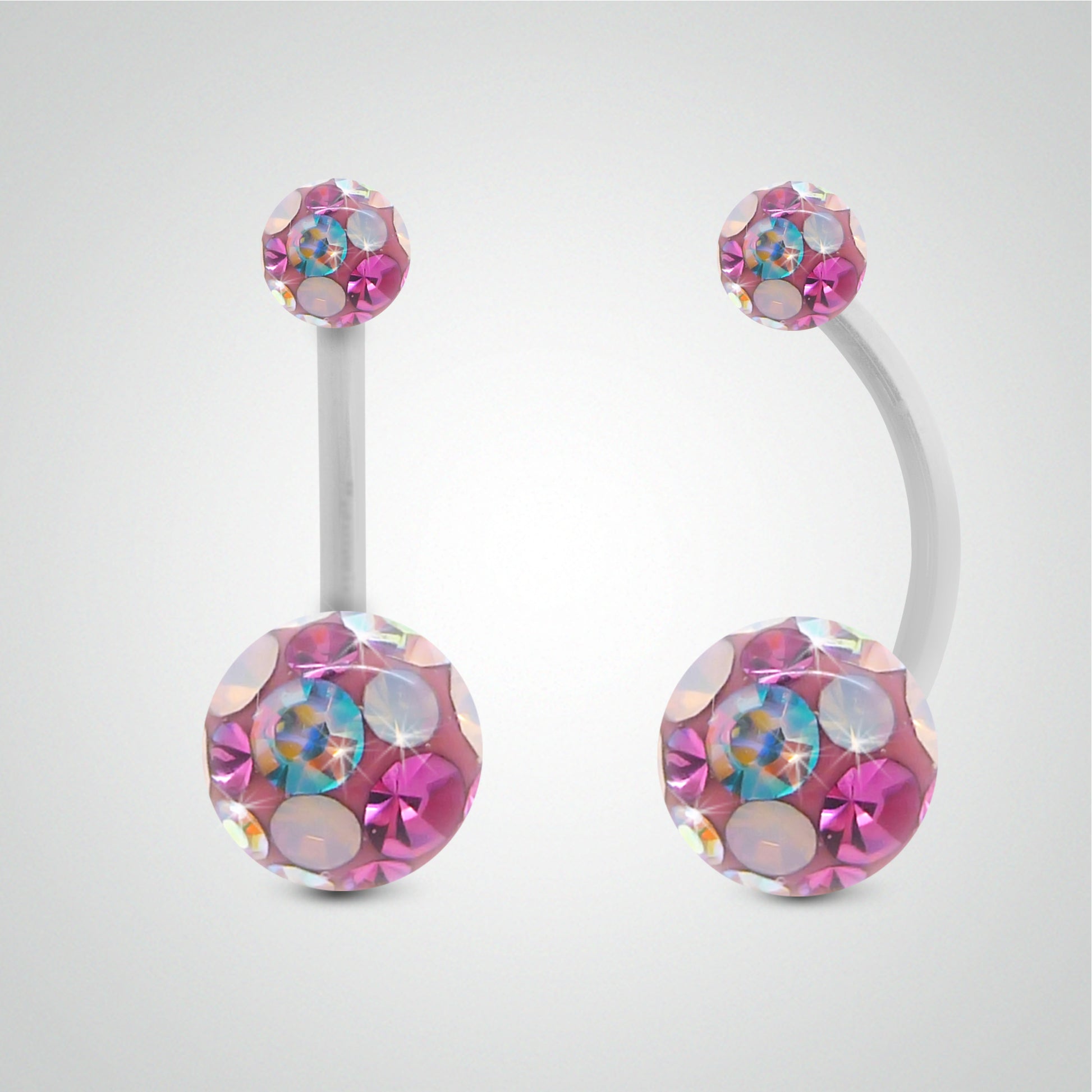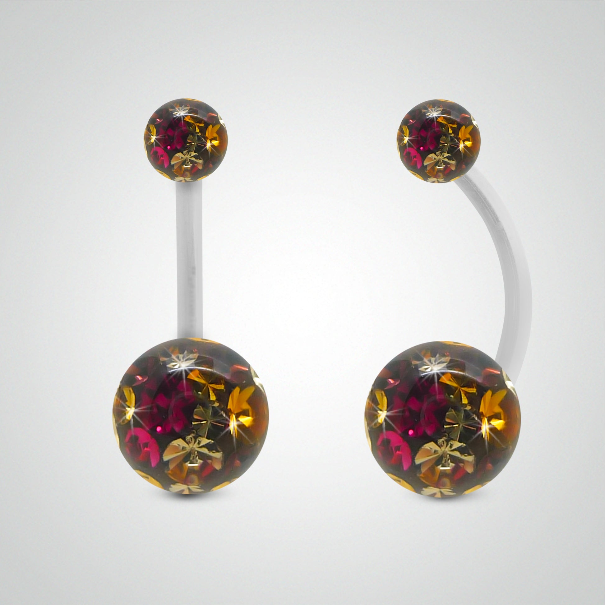 Piercing de nombril en or blanc 18 carats (750/1000) et boules Swarovski multicolores.