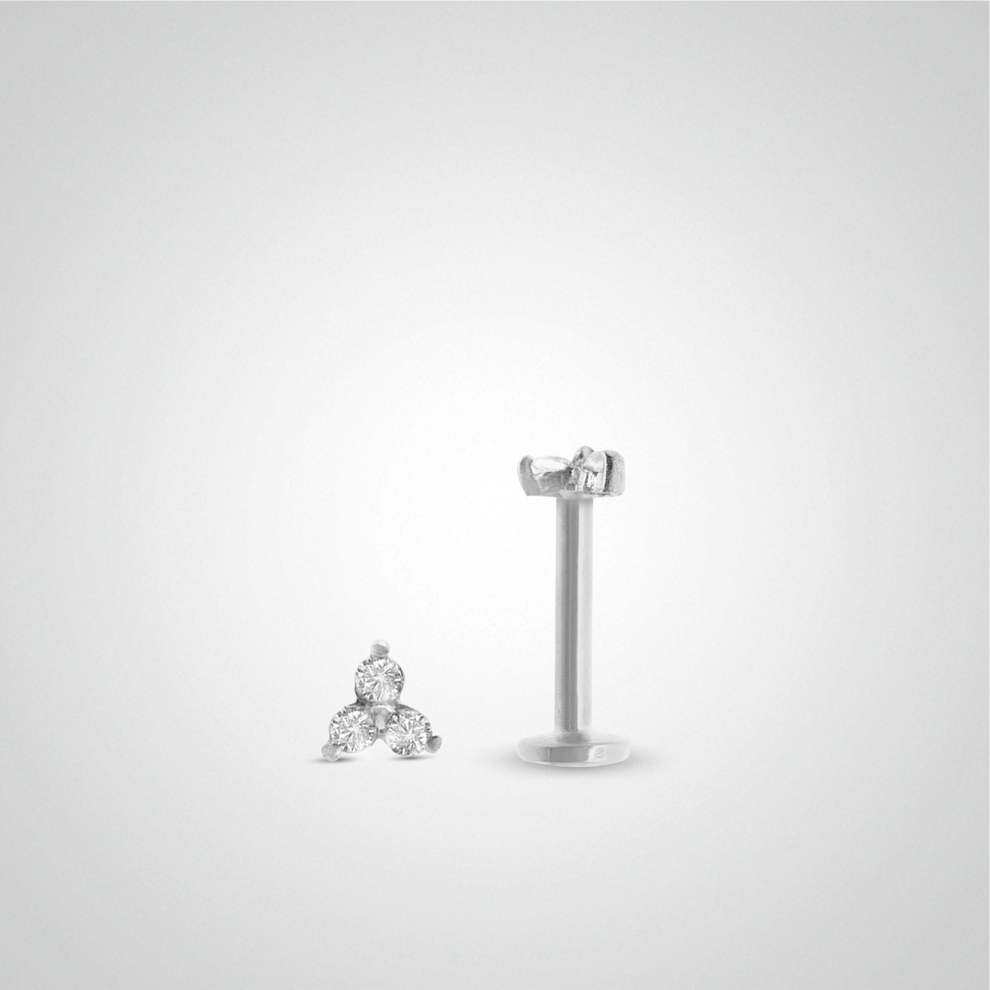Piercing labret en or blanc 18 carats (750/1000) avec zircons.
